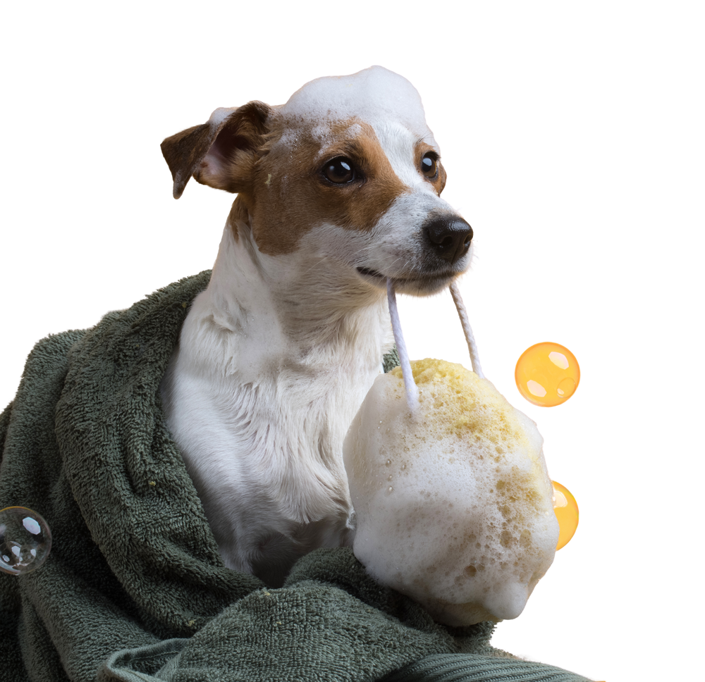 No final da aula os cães são higienizados com shampoo a seco antes de voltarem para suas casas.